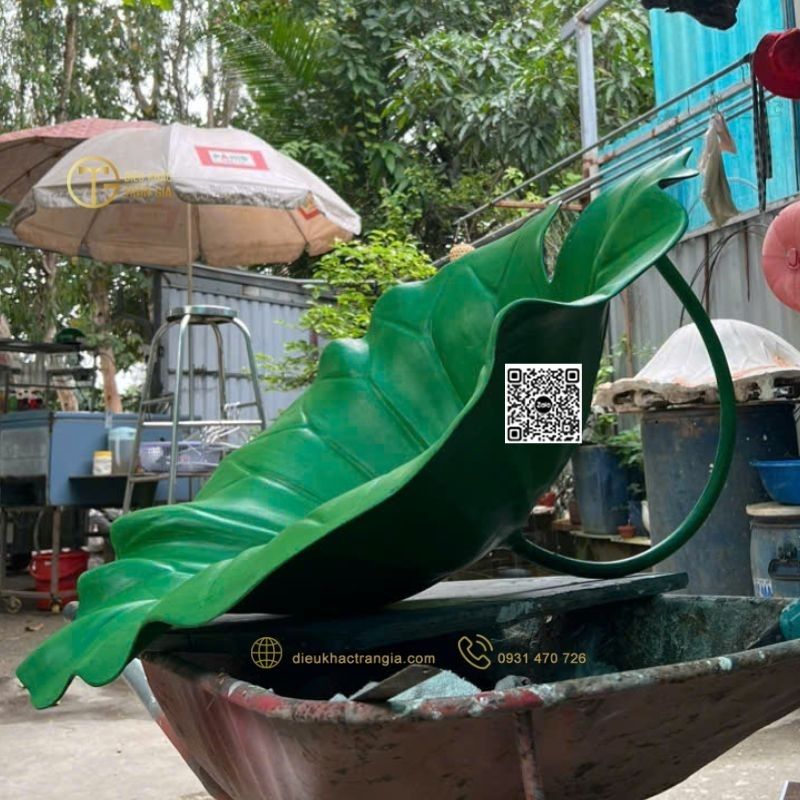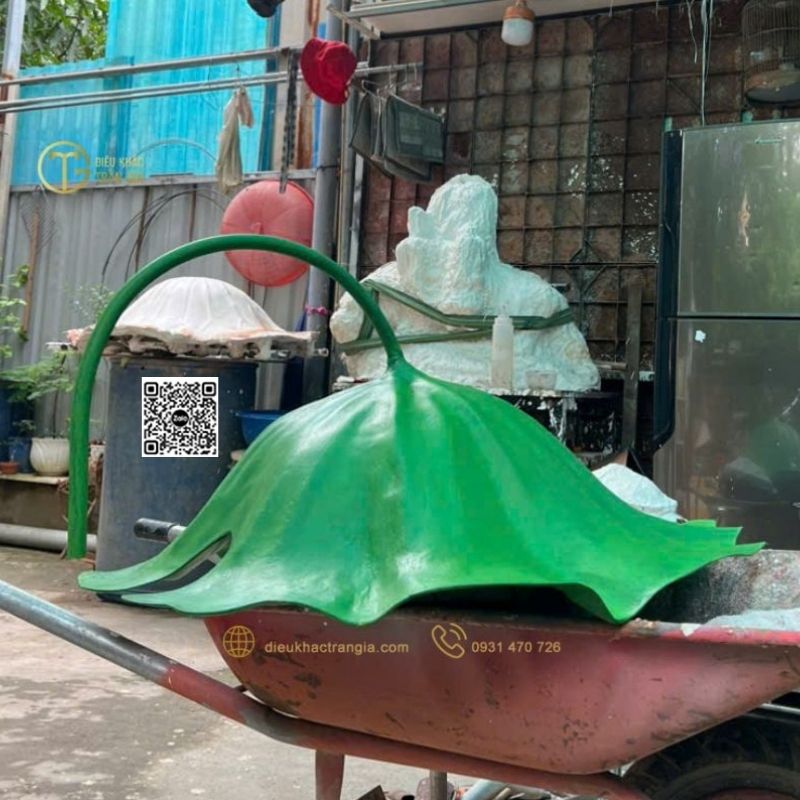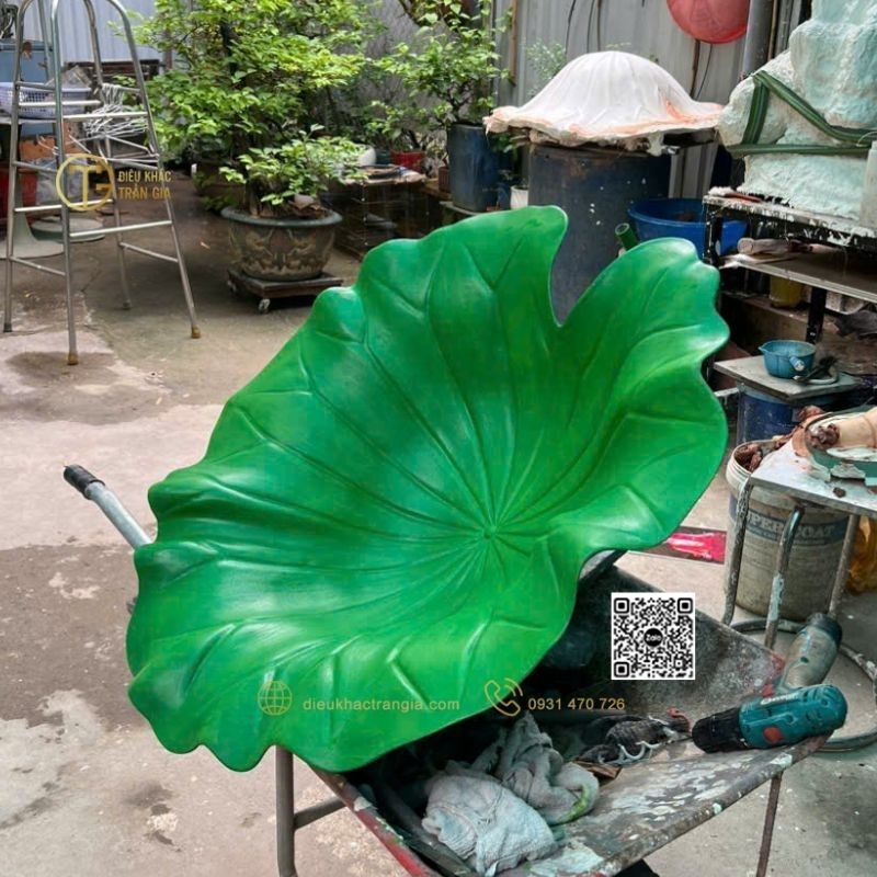 - Lá sen che tượng Phật ngoài trời được thiết kế với hình dáng mô phỏng lá sen tự nhiên, các đường gân lá được tạo hình rõ nét, mềm mại, thể hiện sự tinh xảo và chiều sâu nghệ thuật, phù hợp với không gian tâm linh truyền thống lẫn hiện đại.