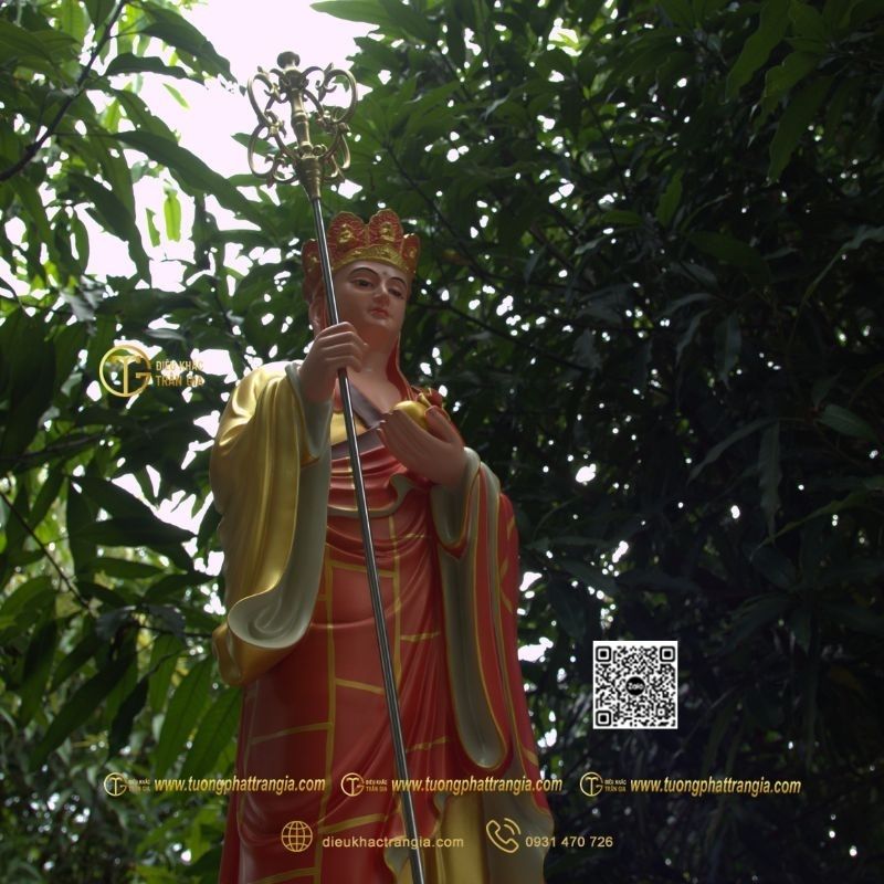 - Trang phục và pháp khí được thể hiện chi tiết, cân đối, tạo cảm giác trang nghiêm nhưng vẫn gần gũi, giúp người chiêm bái dễ sinh tâm kính ngưỡng.