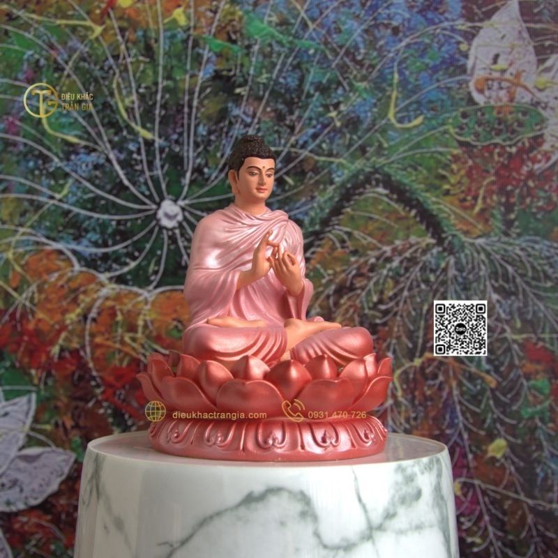 Hình ảnh mẫu Tượng Bổn Sư chuyển pháp luân 15cm hồng cam