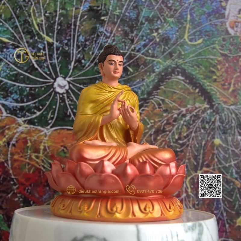 Thông tin Tượng Bổn Sư chuyển pháp luân 15cm vàng cam