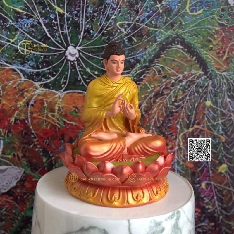Hình ảnh mẫu Tượng Bổn Sư chuyển pháp luân 15cm vàng cam