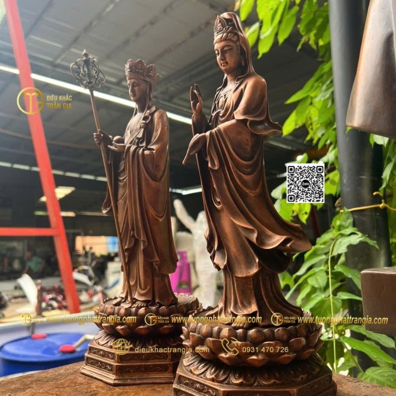 - Chất liệu đồng nguyên khối mang lại độ bền cao, hạn chế ăn mòn, giữ được màu sắc và thần thái trang nghiêm theo thời gian sử dụng.