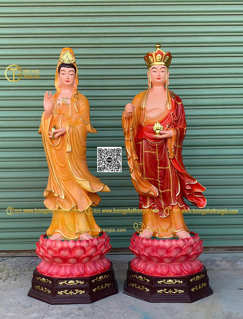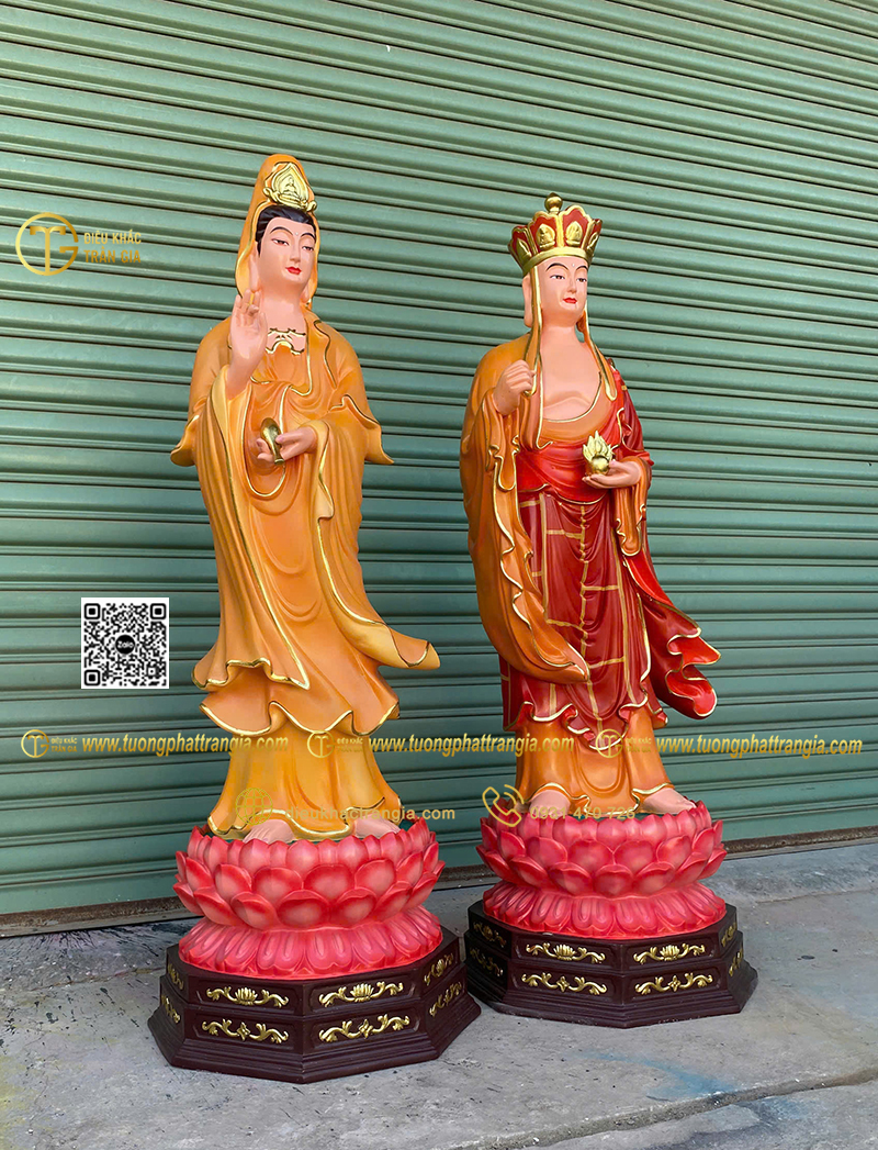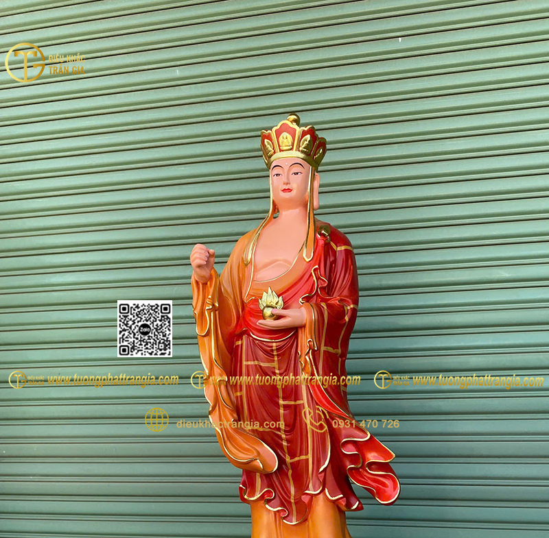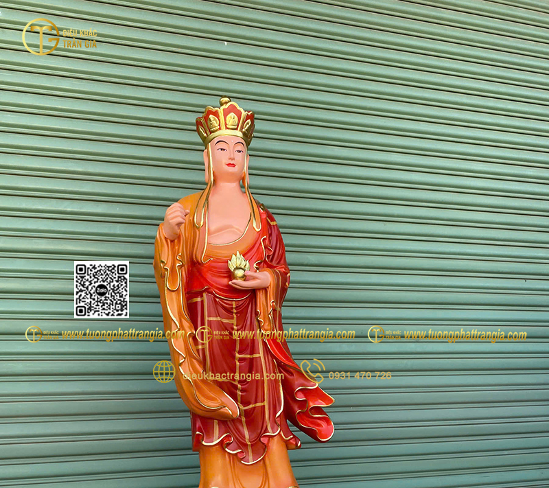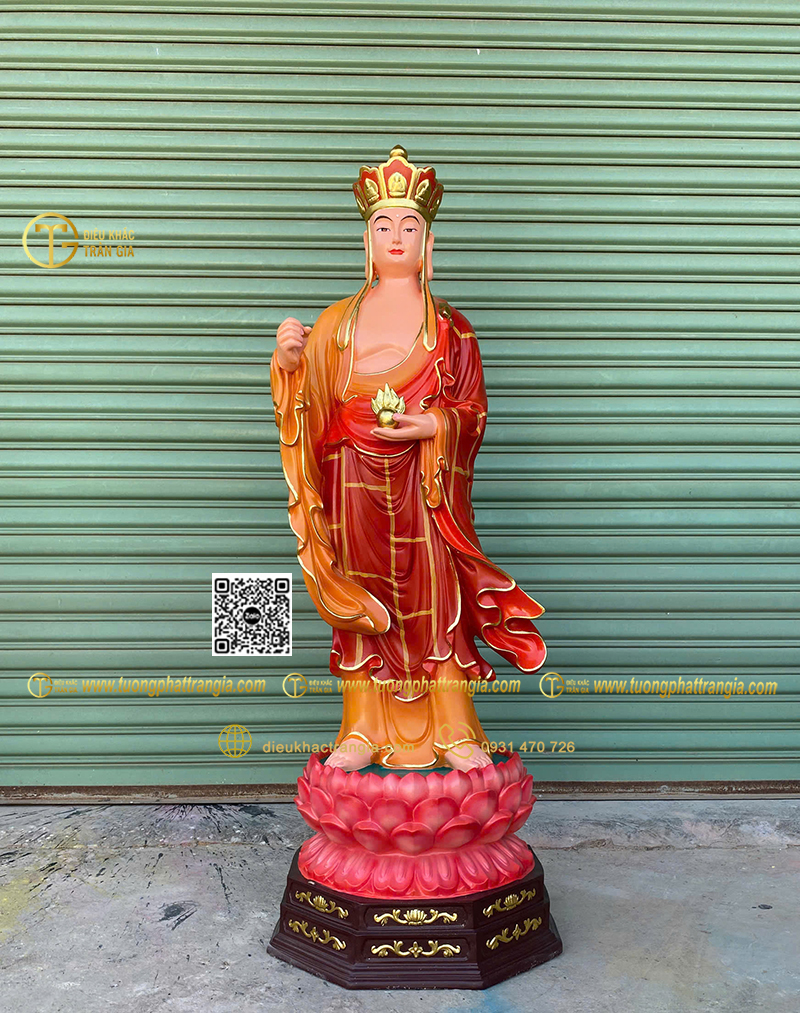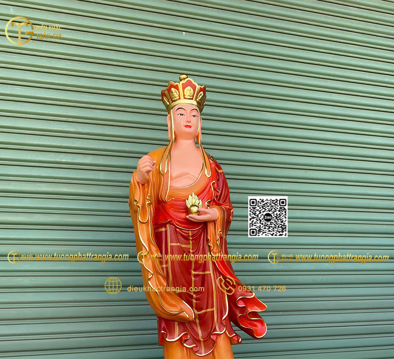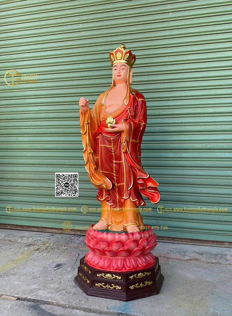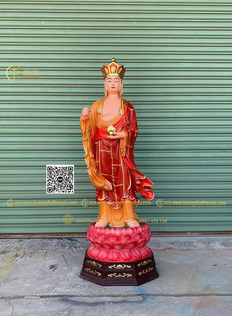 - Kích thước tượng cao 130cm phù hợp đặt trong phòng thờ gia đình lớn, chùa, tịnh xá hoặc không gian thờ bán ngoài trời có mái che.
