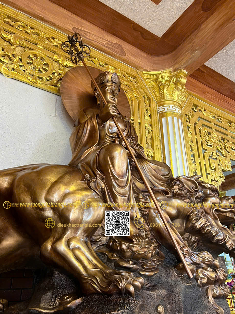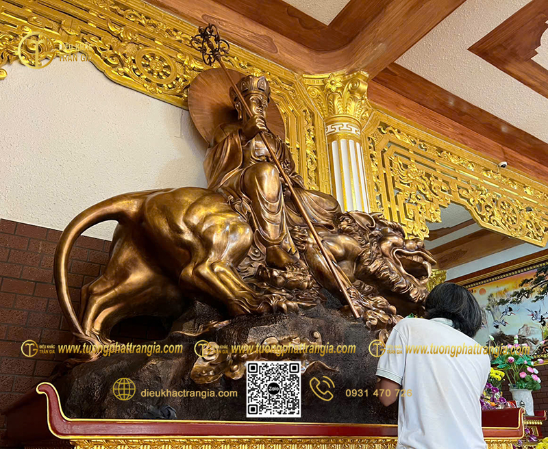 - Tượng được chế tác hoàn toàn từ chất liệu đồng cao cấp, giúp bề mặt chắc chắn, độ bền cao và khả năng chống chịu tốt trước điều kiện thời tiết khắc nghiệt khi đặt ngoài trời hoặc trong không gian mở.
