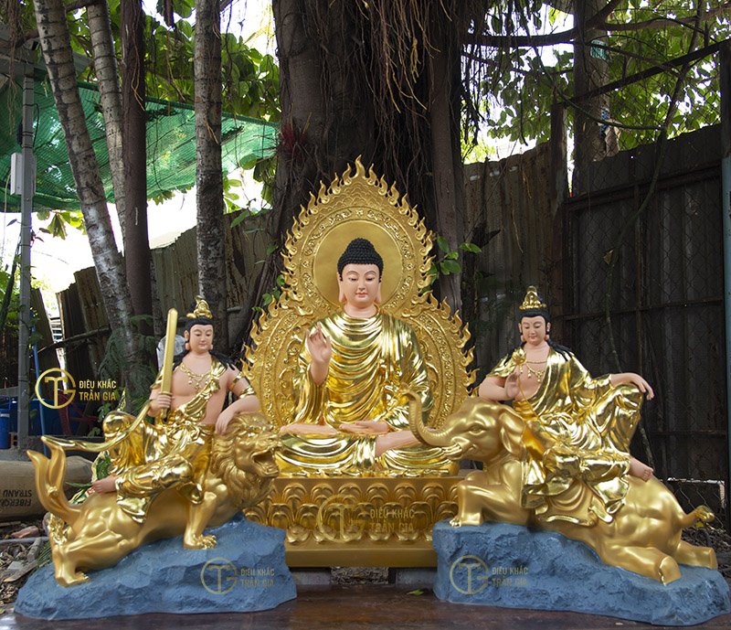 Thích Ca Tam Thánh bao gồm Đức Phật Thích Ca ở giữa, bên phải là Văn Thù Bồ tát cưỡi sư tử xanh và bên trái là Phổ Hiền Bồ tát cưỡi voi trắng sáu ngà.